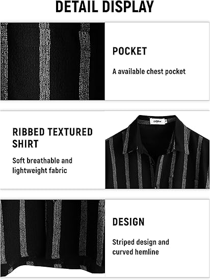• Classic Design: The ribbed textured shirt features striped design and curved hemline that adds a touch of fashion sense, and has one chest pocket that is covenient to hold small items, regular fit shirts are suitable for most people, simple but classic, it never goes out of style.